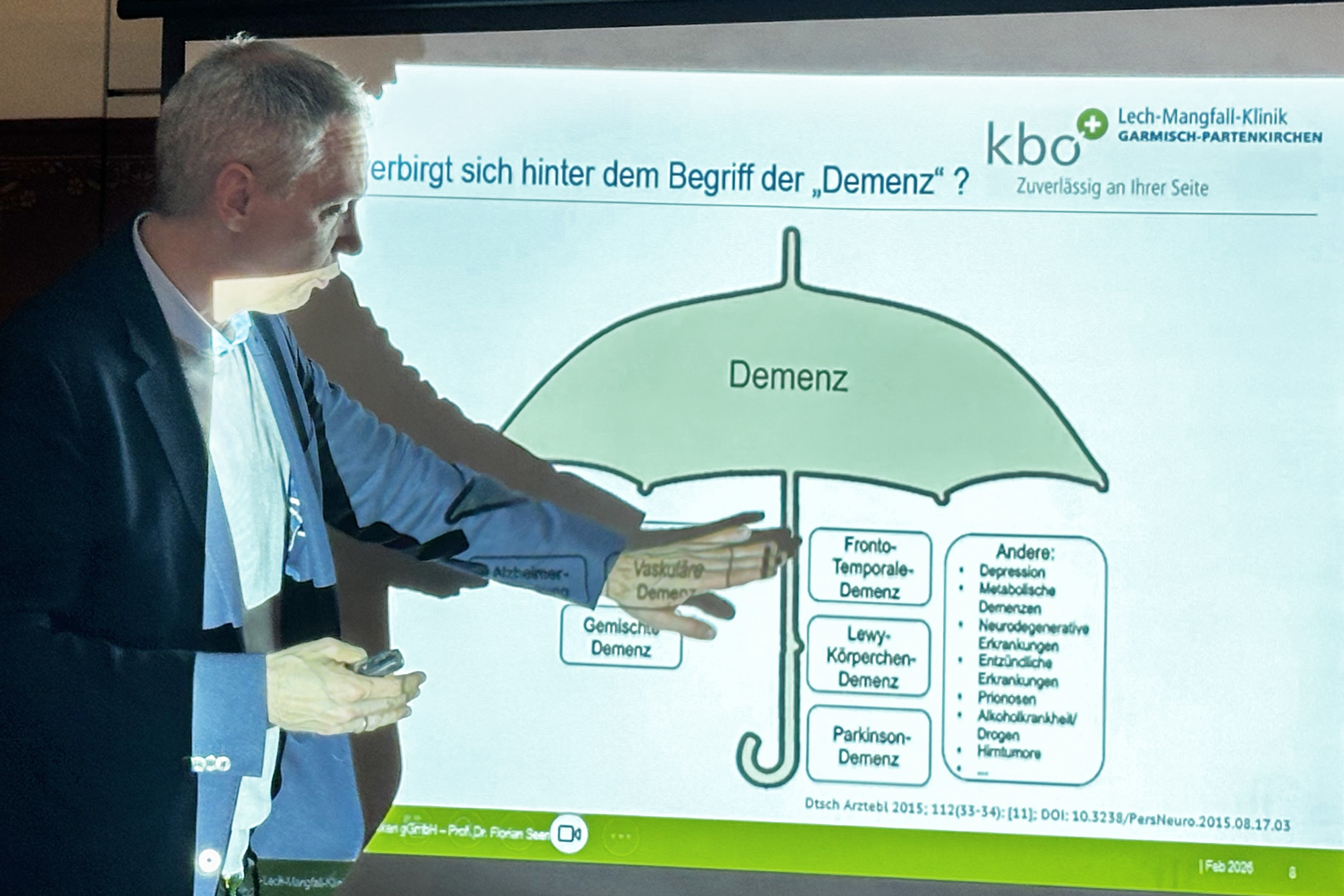 Im Rahmen der medizinischen Vortragsreihe „Gesundheit macht den Unterschied“ referierte Priv. Doz. Dr. Florian Seemüller, Chefarzt der kbo-Lech-Mangfall-Kliniken in Garmisch-Partenkirchen über das Thema Demenz und Depression.